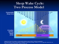 Both animal and human studies support a model of 2 processes that regulate sleep and wakefulness: homeostatic and circadian. The homeostatic process is the drive to sleep that is influenced by the duration of wakefulness. The circadian process transmits stimulatory signals to arousal networks to promote wakefulness in opposition to the homeostatic drive to sleep.